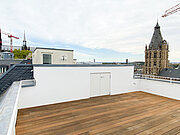 Die großzügige Dachterrasse bietet einen umfassenden Blick über die Kölner Innenstadt – vom Dom über den Rathausturm bis zum Rhein und weit ins Umland. Silvester kann kommen.