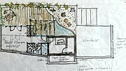 Ein altersschwacher Verschlag und das Aufzughäuschen mit provisorischen Geländern ließ bei Sonnenschein bei den Bauherren den Wunsch reifen, hier eine grüne Oase zu schaffen und gleichzeitig der Straßenfassade ein neues Gesicht zu geben.