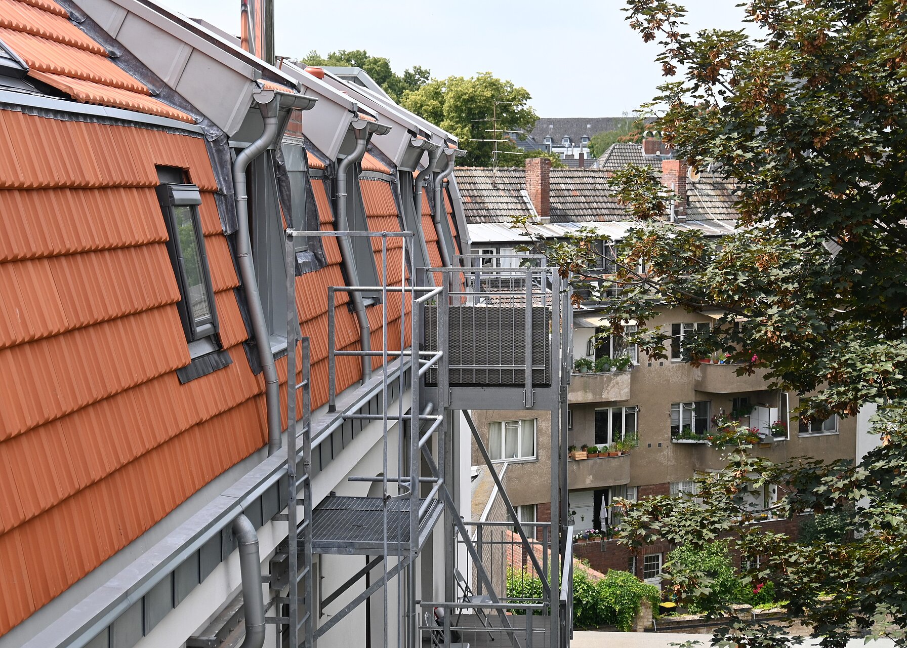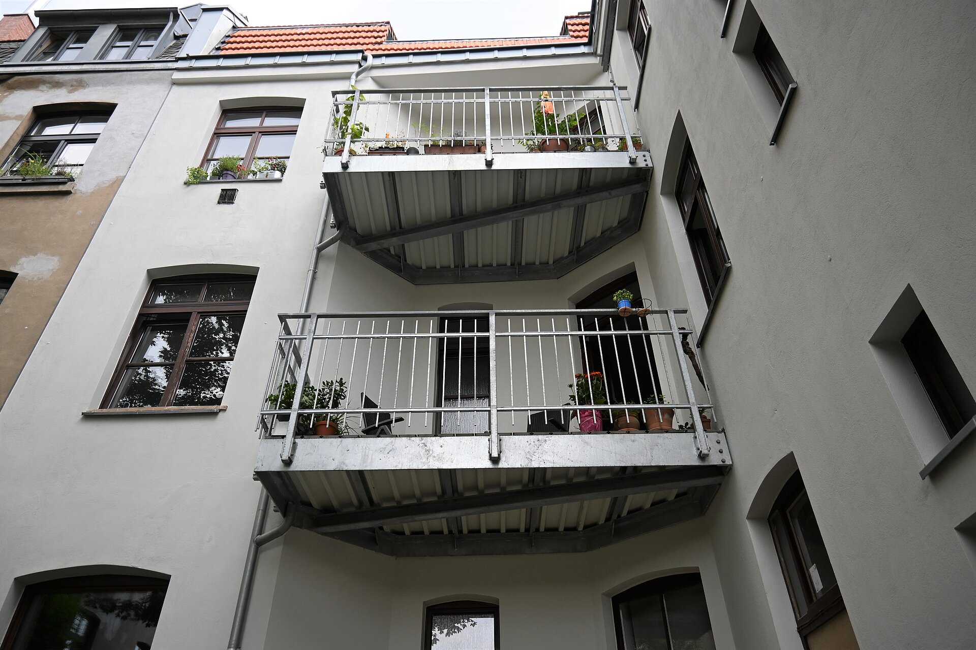 Die bestehenden Wohnungen erhalten Balkone oder Altane. Zur Erschließung wird innerhalb des Gebäudes am originalen Treppenraum ein Aufzug eingebaut, der ein bequeme und barrierefreie Zugänglichkeit zu den Wohnungen erlaubt.
