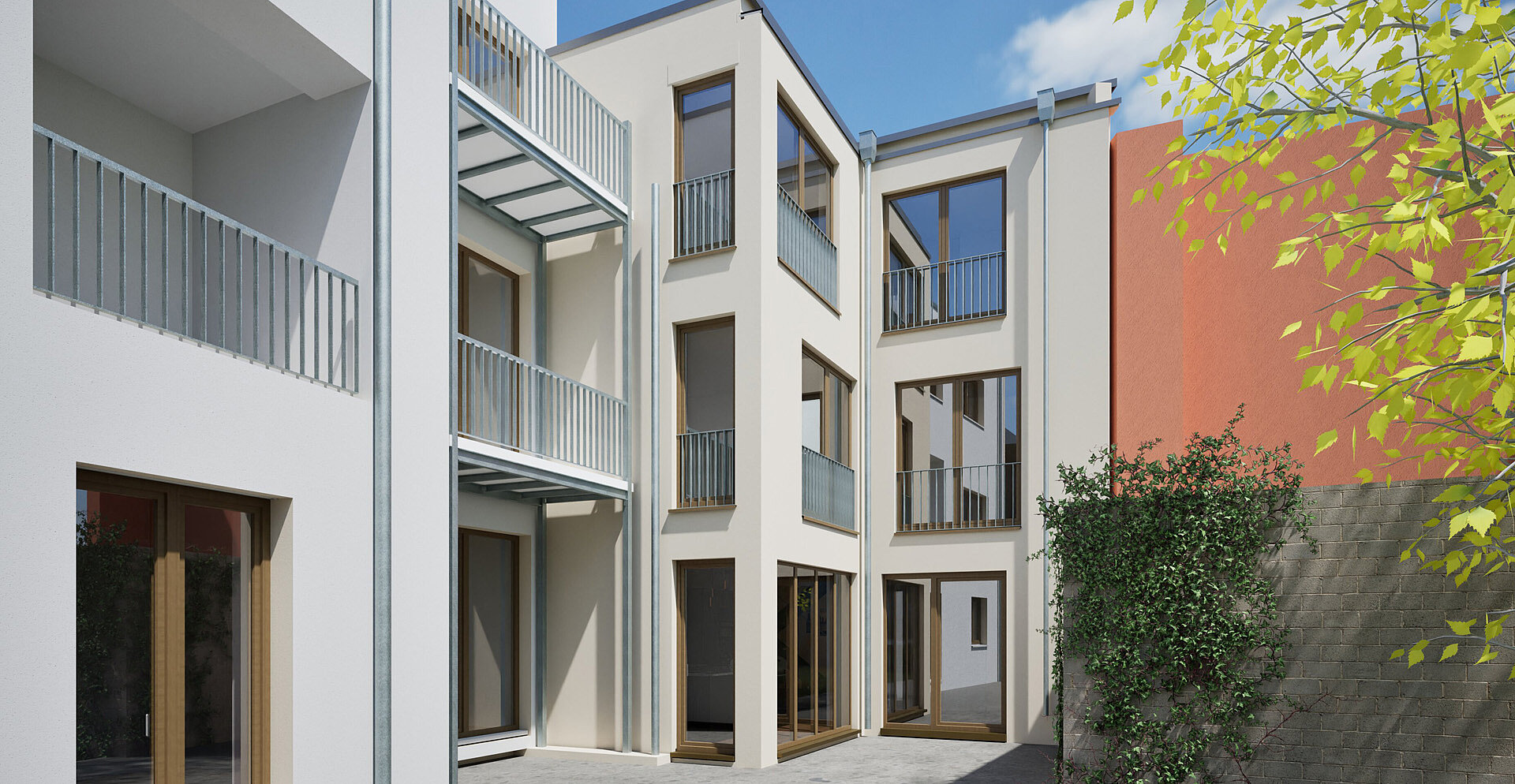 Auf einem kaum bebaubaren Restgrundstück mit lediglich 70 m² Innenhoffläche, eingebettet in die dichte Bebauung von Köln-Mülheim, entsteht ein außergewöhnliches Einfamilienhaus in Holzrahmenbauweise.