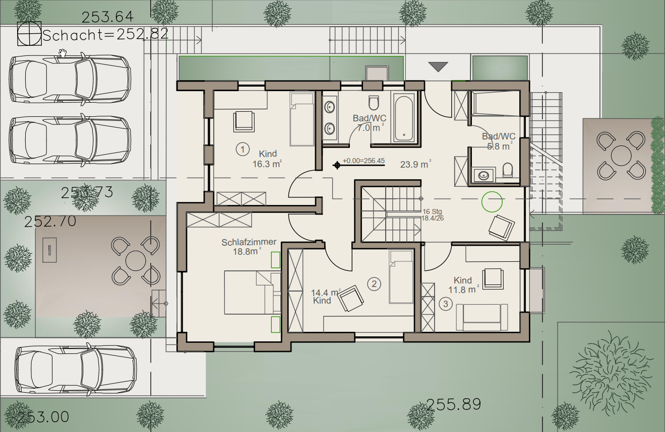 Schlaf- und Kinderzimmer finden sich im EG, sodass der geringe Gartenanteil hier nicht als Nachteil empfunden wird.
