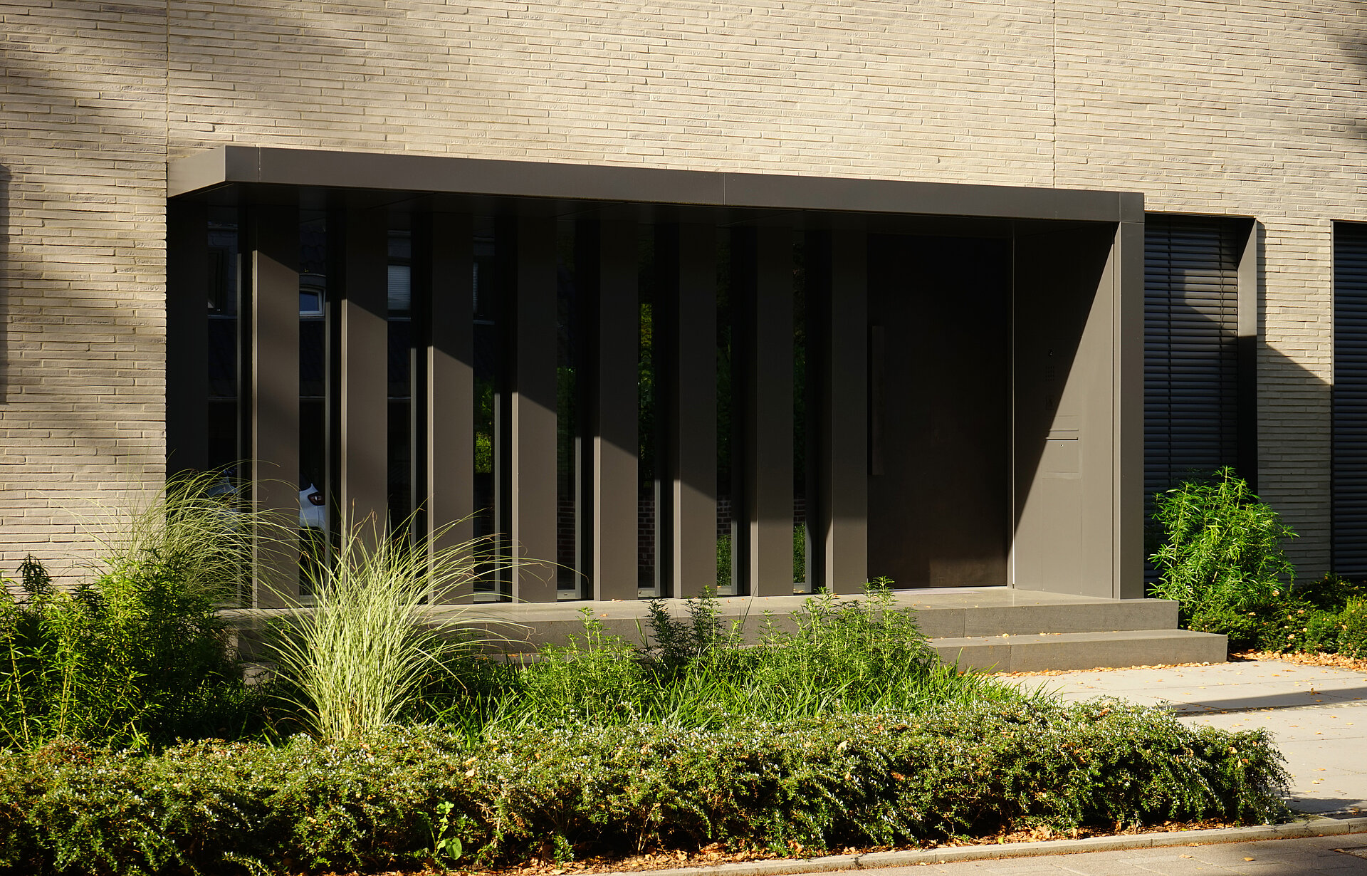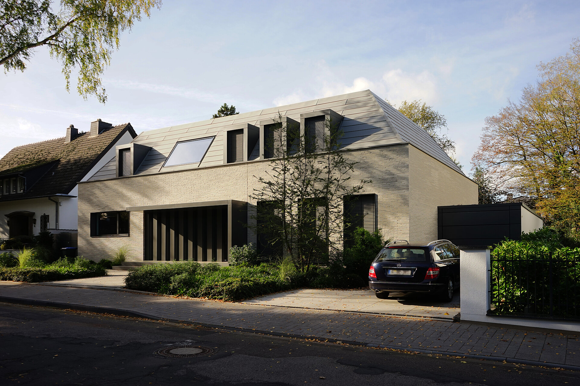 In einem westlichen Kölner Vorort entstand dieses moderne Wohnhaus mit Einliegerwohnung für einen privaten Bauherrn. Die Architektur des Hauses ist ein Zeugnis des Dialogs zwischen traditionellen und modernen Materialien.