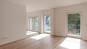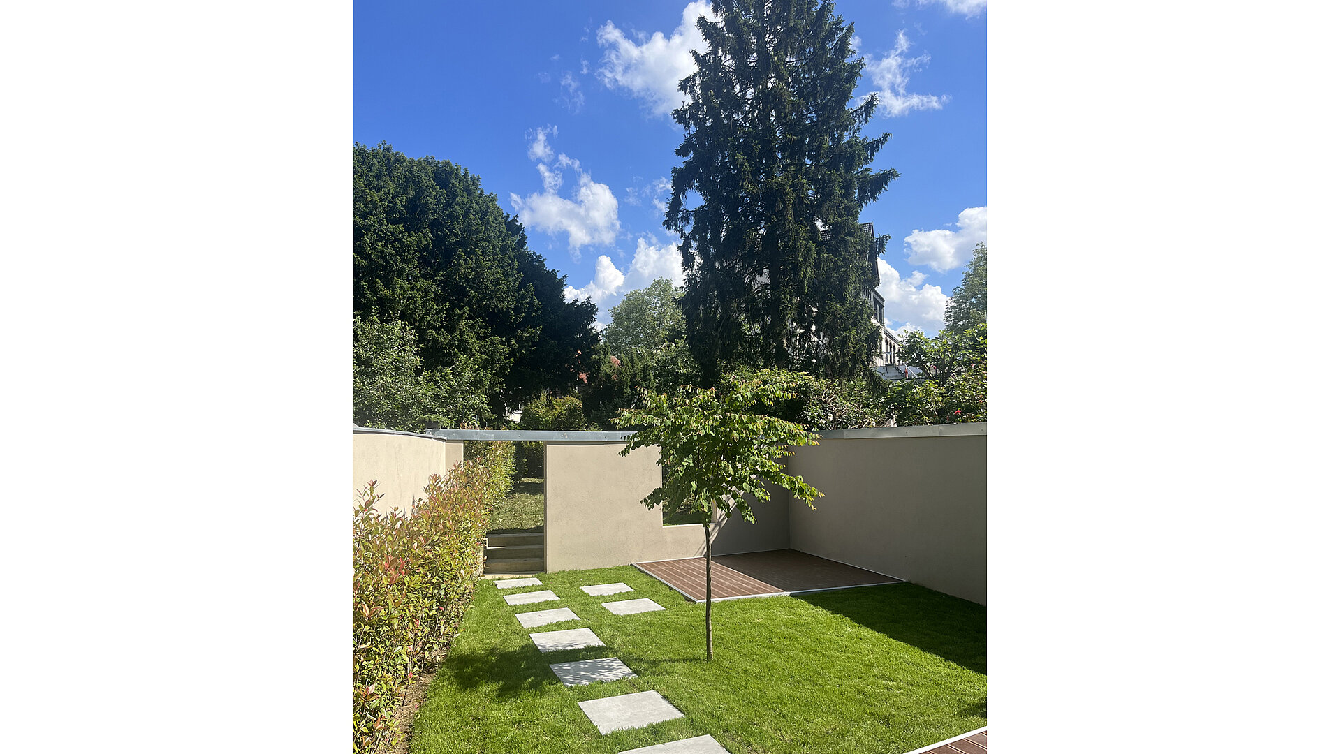 Im Erdgeschoss entstand eine großzügige Wohnung mit ca. 83 qm Wohnfläche. Der offen gestaltete Wohn-Ess-Kochbereich öffnet sich zu einem geschützten Innenhof mit Terrasse sowie ein privater Gartenbereich schaffen eine grüne Rückzugsoase mitten in der Stadt.