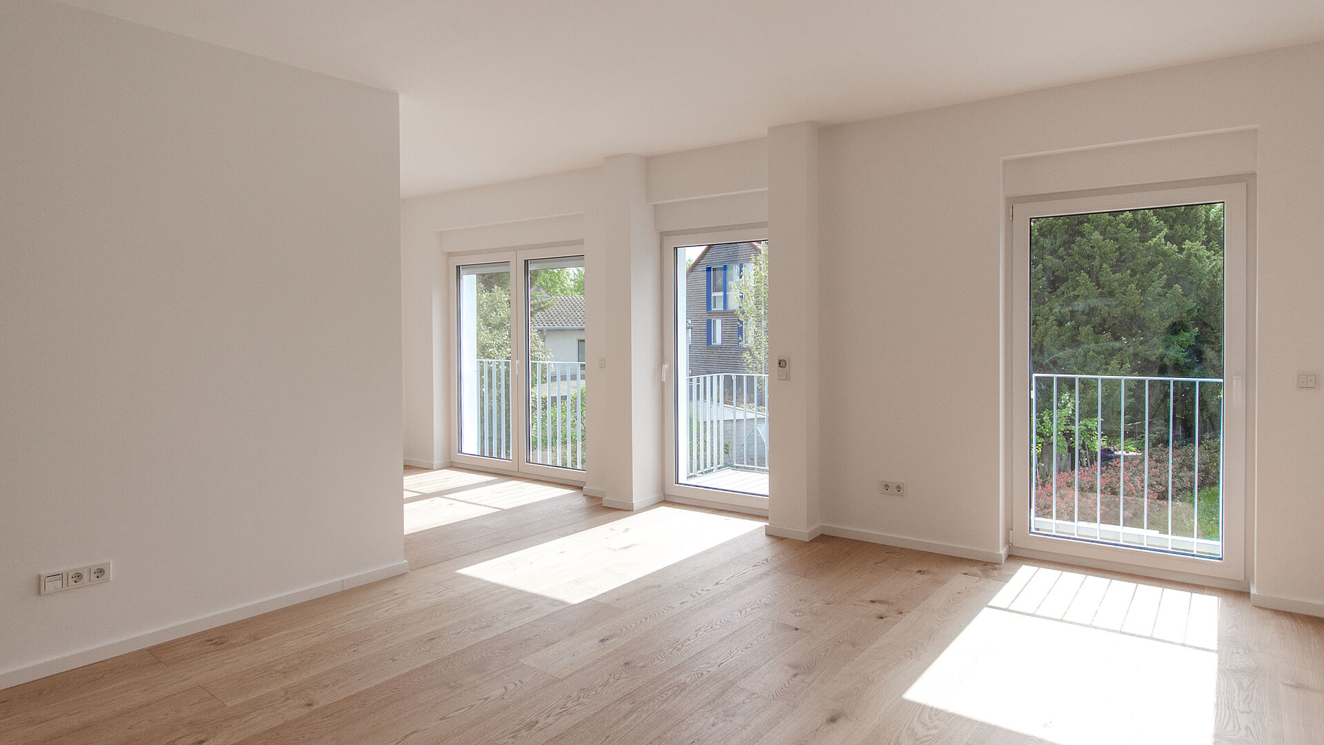 Im ersten Obergeschoss befindet sich eine rund 70 qm große Wohnung mit Balkon in Süd-Ost Richtung. Großzügige, raumhohe Fensterelemente durchfluten den offenen Wohn-Ess-Kochbereich mit Licht. Ein komfortables Schlafzimmer mit Ankleide sowie ein modernes Duschbad runden das Raumangebot ab. Im Dachgeschoss unter Einbeziehung des jetzt ausgebautem Spitzboden ist eine rund 83 qm große Maisonette-Wohnung entstanden. Die offene Wohnebene führt auf eine Dachterrasse mit Blick auf Alt-Müngersdorf. Eine einläufige Treppe verbindet den Wohn-Ess-Bereich mit dem Spitzboden, in dem ein lichtdurchfluteter Raum mit Atelierverglasung, eine weitere Terrasse sowie ein Tageslichtbad mit Badewanne ein besonderes Wohnambiente schafft.