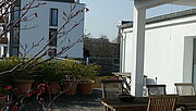 Ein altersschwacher Verschlag und das Aufzughäuschen mit provisorischen Geländern ließ bei Sonnenschein bei den Bauherren den Wunsch reifen, hier eine grüne Oase zu schaffen und gleichzeitig der Straßenfassade ein neues Gesicht zu geben.