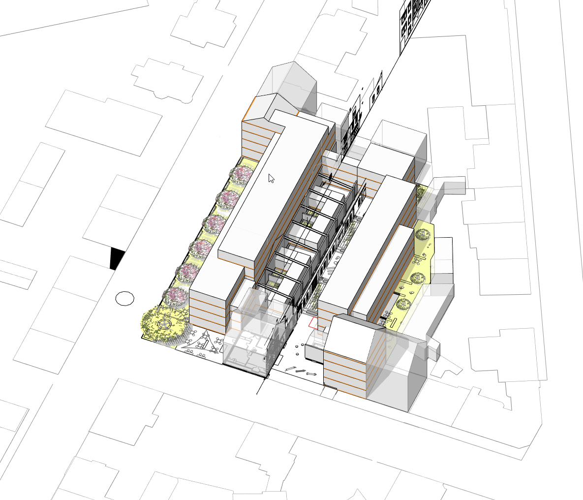 Unser Konzeptansatz „die Permanenz der Struktur“ nimmt bewusst die vorhandene stringente Gliederung des Grundstücks und der historischen Hallen auf und erhält die Historie des Ortes, die „Fabrikantenvilla“ wird dabei wie ein Juwel eingerahmt.