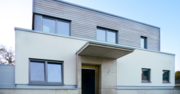 In Swisttal entstand ein neues Zuhause für eine Familie – als Zeichen der Hoffnung und des Wiederaufbaus nach der verheerenden Flut im Jahr 2021. Nach einem intensiven Austausch mit den Bauherren wurde ein nachhaltiges Staffelgeschoss-Wohnhaus im KfW 40+ Standard entwickelt, das Sicherheit, Energieeffizienz und Wohnqualität verbindet. Der Aufbau erfolgt auf dem verfüllten Altbaukeller, darüber liegt ein umlaufender Betonsockel in Sichtbeton, ausgeführt als „weiße Wanne“ mit integriertem Dammbalkenschutzsystem. So wird das Gebäude dauerhaft gegen Hochwasser bis +1,80 m über Straßenniveau geschützt und gleichzeitig gestalterisch mit der Landschaft verankert.