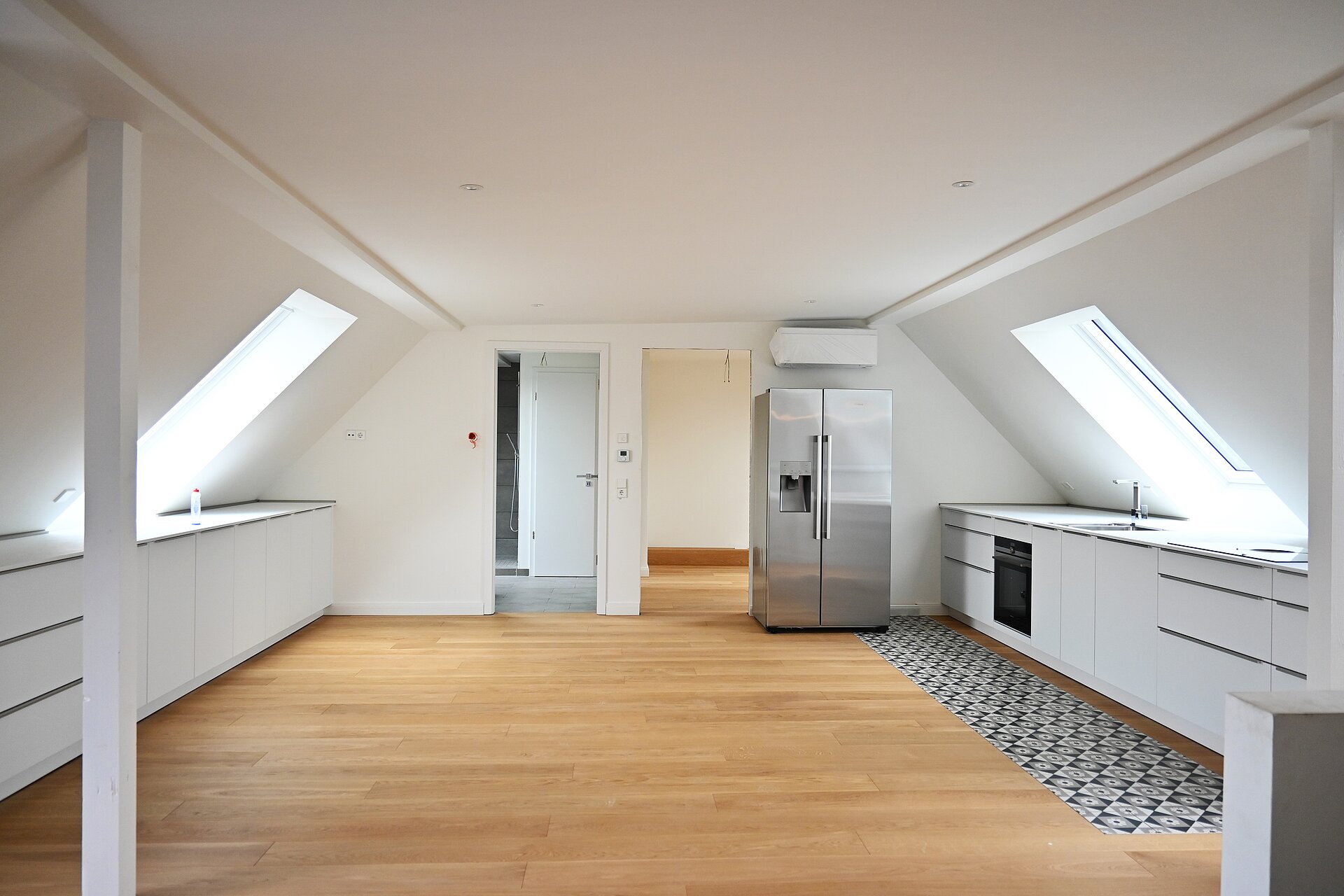 Dieses weitgehend von Schäden unversehrte Schmuckstück gilt es sorgsam zu sanieren und im Dachraum zusätzliche Wohnfläche zu ergänzen. Es entsteht dort eine weitere Maisonette-Wohnung mit Dachterrasse.